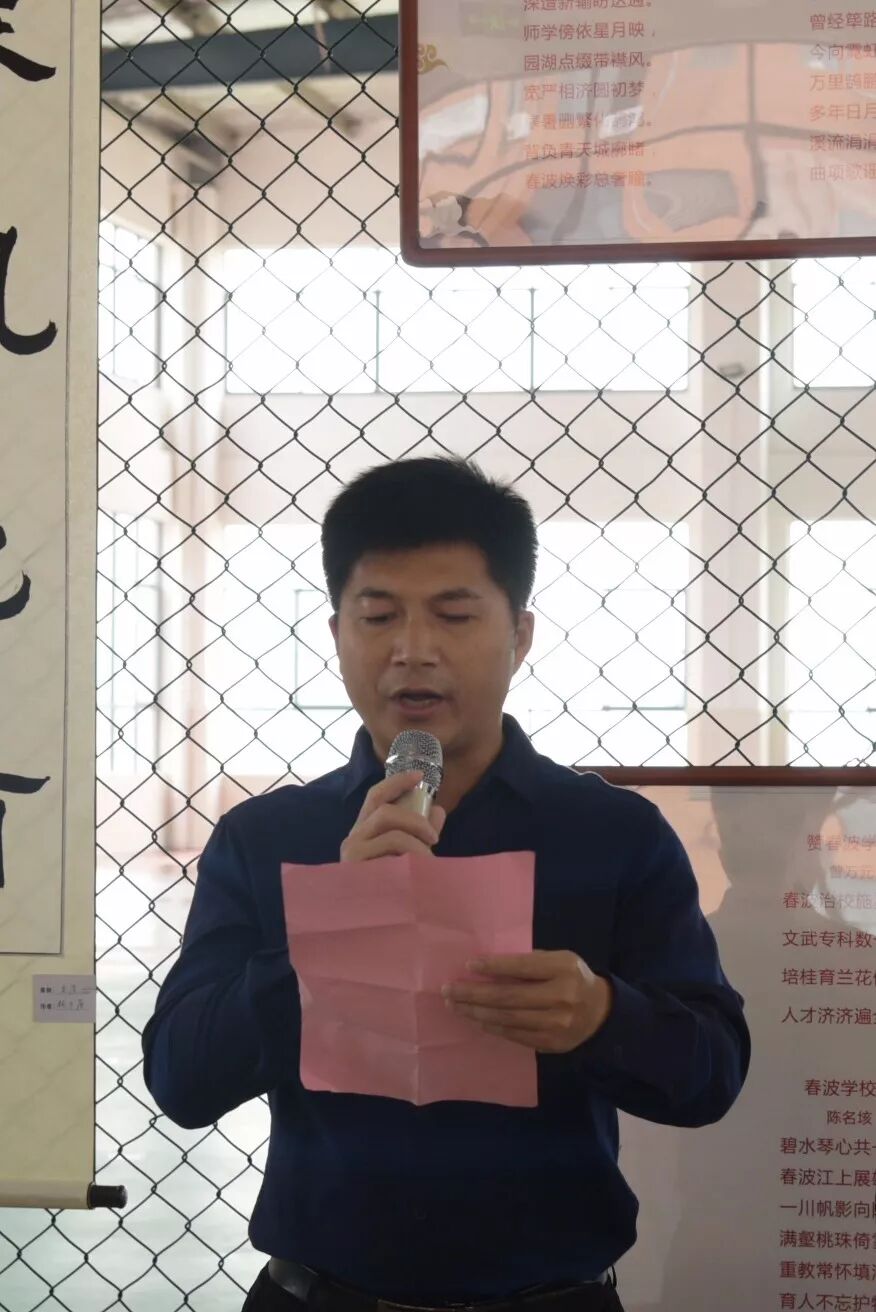 10月9日上午,丰城市首次规模最大、品味最高的诗书画作品展走进校园在江西春波学校隆重开幕,市委常委、宣传部部长陈晓建、市教育局局长刘拥军、市文联主席聂小梅等领导出席并讲话,江西春波学校校长袁春波作了热情洋溢的致辞。