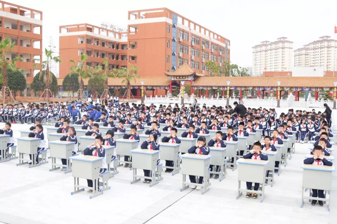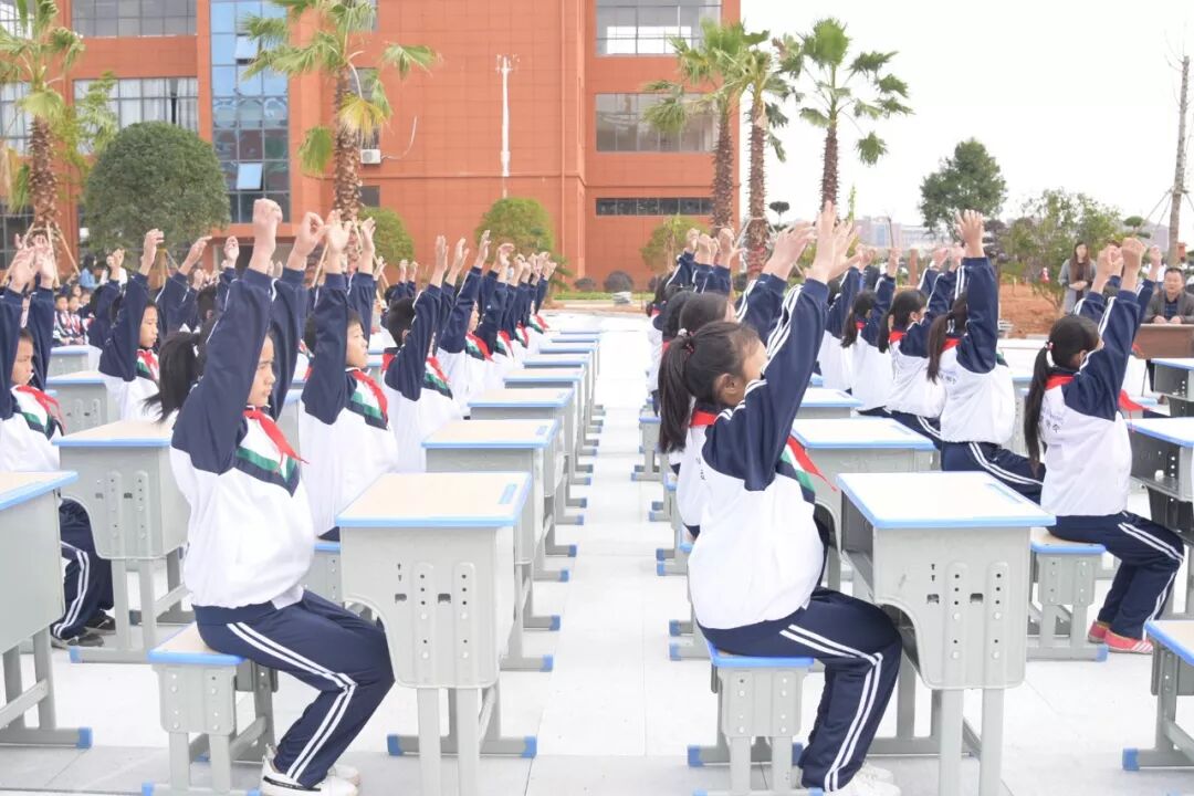 各班同学统一着装,入场步伐铿锵有力。手指操动作整齐划一,眼保健操动作舒缓准确,展示了入学以来大课间活动的训练成果。
