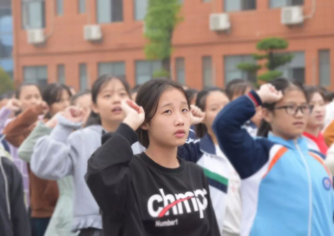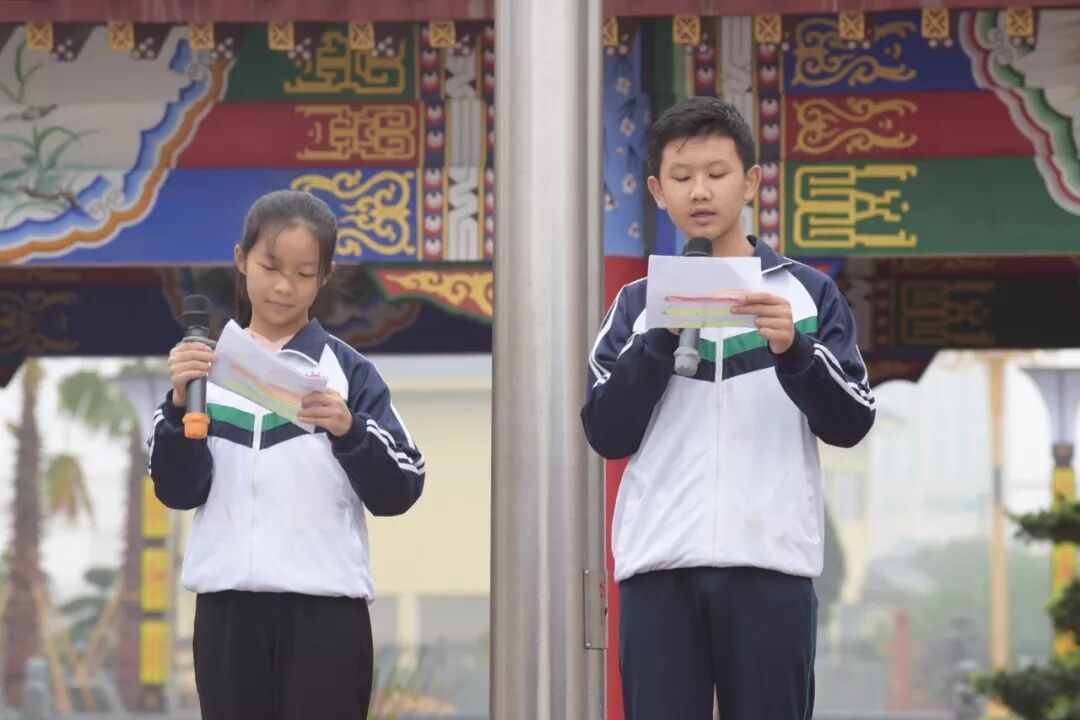 同学们满怀期待早早地集结到了操场。各班都排着整齐的列队,一切准备就绪。学校国旗护卫队成员迈着铿锵的步伐,走到了国旗台前,当庄严的国歌奏响,五星红旗冉冉升起,全体师生目光齐聚,眼里透出无以言说的自豪。