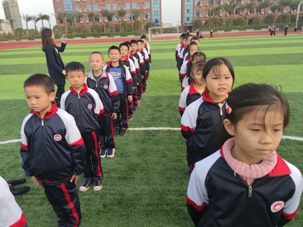 一、二、三年级的孩子们,在小学部蔡总教练响亮的口令指挥下,一个个小小的身影做着“向左转”、“向右转”、“立正”、“稍息”等动作,孩子们动作规范,表情严肃,俨然一个个神气的小战士。