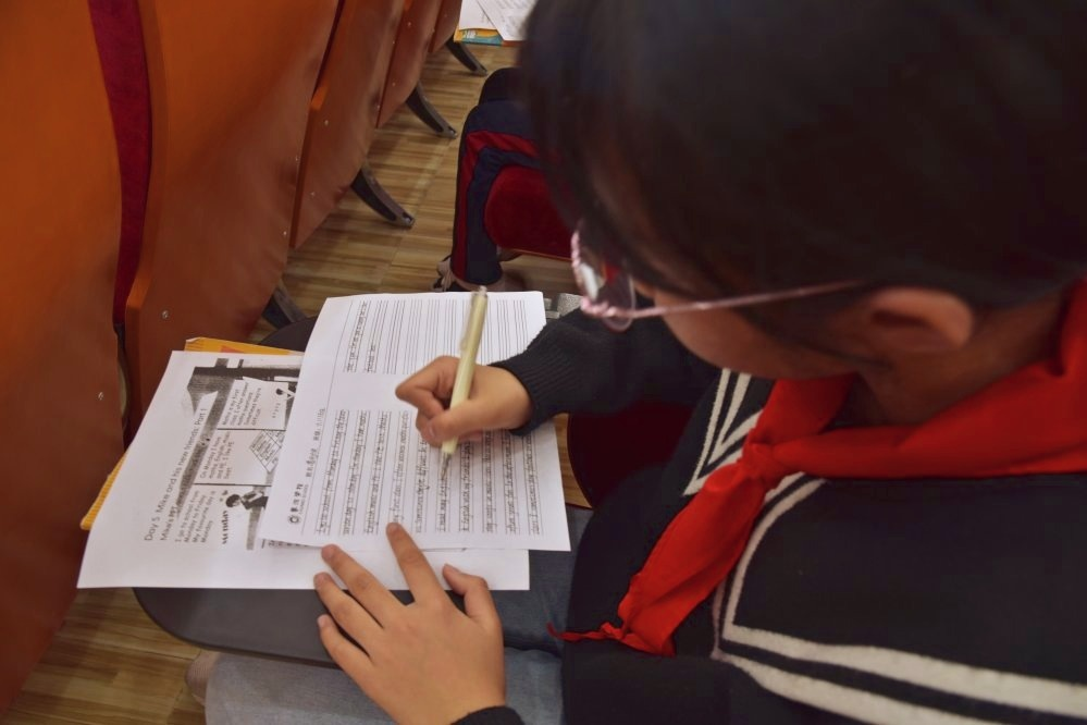 该年级段由各班精选出10位同学,以摘抄句子的形式进行英语书写比赛,四年级书写课本对话,五、六年级书写课本短文,限时30分钟。要求学生清楚地书写单词、句子、短文,并做到大小写、词句、标点符号、书写形式正确和规范。