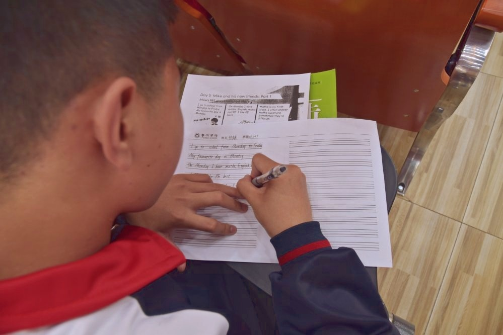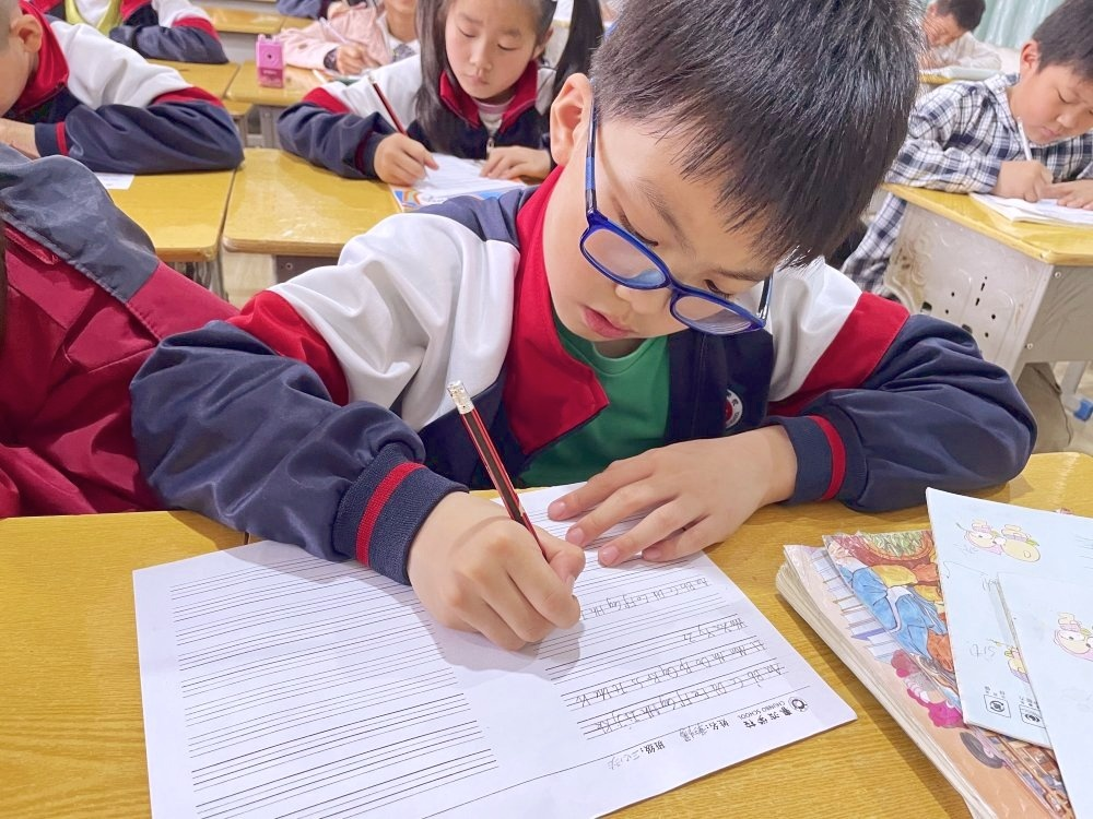 同学们平心静气,全神贯注,一笔一划都凝聚了字迹所有的努力与期待!26个字母在他们严谨、认真的书写中增添了一份灵动之美。