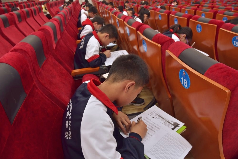 赛场上,同学们奋笔疾书,笔底下好像有源源不断的泉水涌流出来,不一会,字迹就布满了整张试卷。