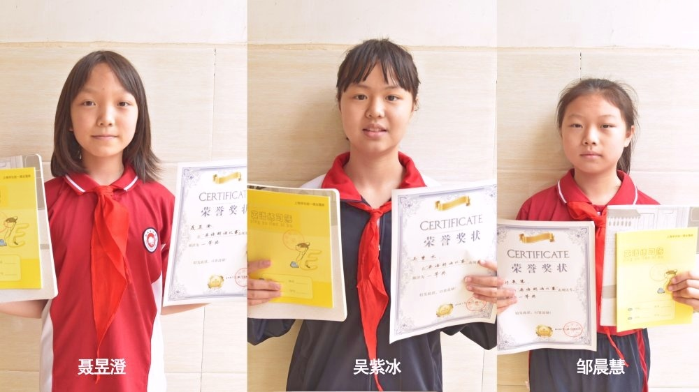 该年级段的一等奖获得者3名:四(1)班陈鸿耀同学、五(2)班王诗雨同学、六(2)班陈宇同学。