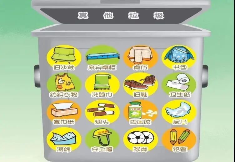 其他垃圾指危害较小,但无再次利用价值。比如:建筑垃圾类,生活垃圾类等。