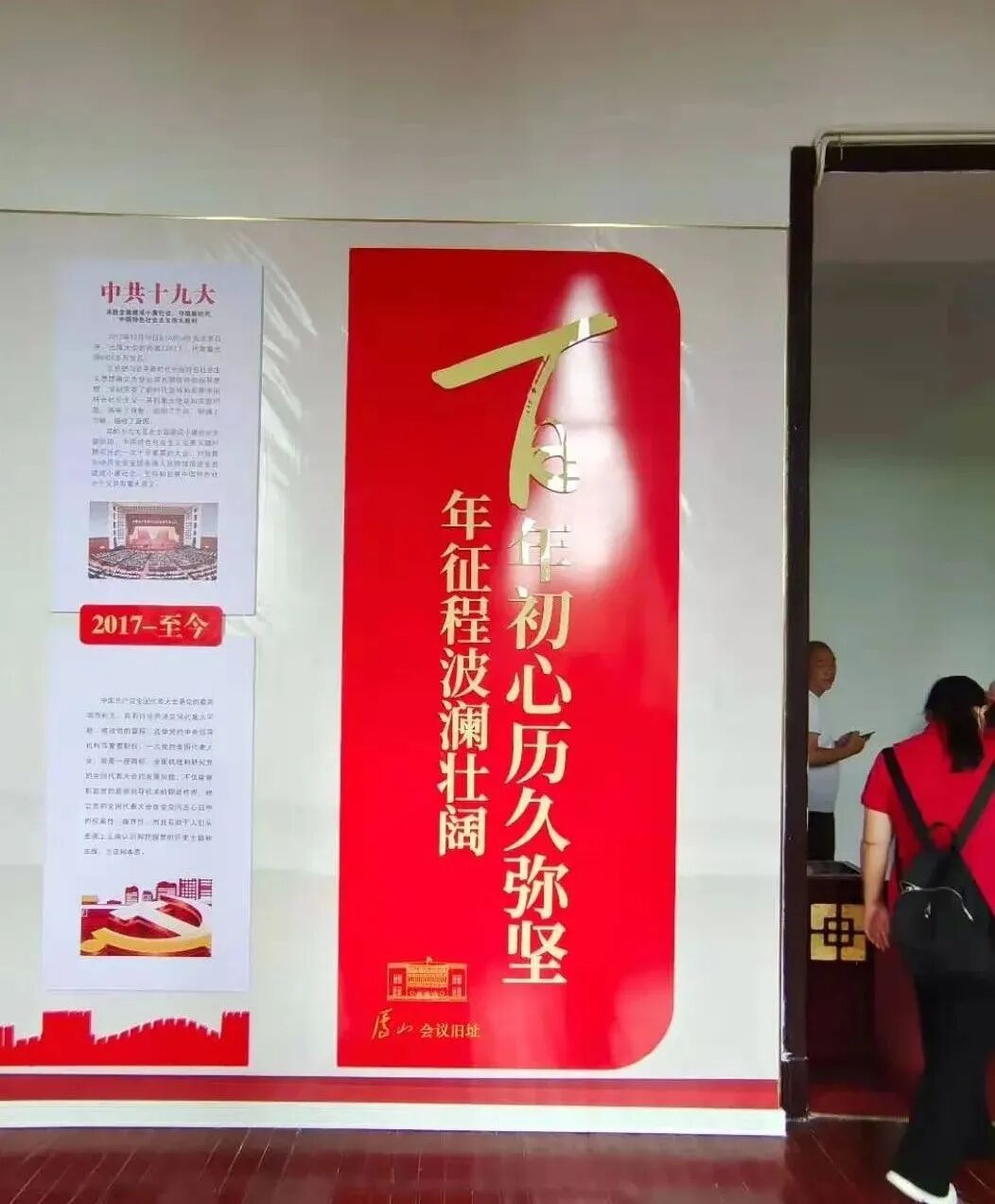 大家来到庐山会议旧址观看“党的辉煌历程——中共一大至十九大”宣传栏,全面重温学习1921年7月中国共产党第一次全国代表大会召开以来,党走过的发展历程,了解中国共产党从艰难探索到开拓创新的奋斗历程。