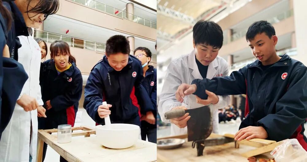 药工师傅给同学们现场展示了“白芍飞上天、木通不见边、陈皮一条线...”的切制工艺,引得同学们一阵尖叫与喝彩,纷纷感叹药工师傅的高超技艺与神奇。课程还开展了中医健康知识小讲堂,为同学们讲授中医健康管理知识,让同学们既能学习到维护身体健康的知识,又能感受到中医文化的魅力。