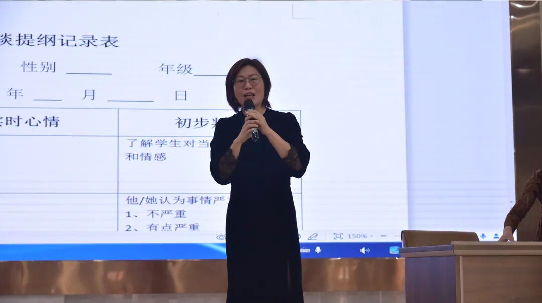 廖晓英老师结合理论知识和工作实际,分析诠释亲身案例,讲述了心理健康教育课是一场生动的体验式教育,应从学习、思维、人际关系、自我认识、自我培养及情绪多方面展开。大家听得津津有味,时而深入思考,时而踊跃互动,在相互学习、探讨、交流中放松了心情,愉悦了身心。