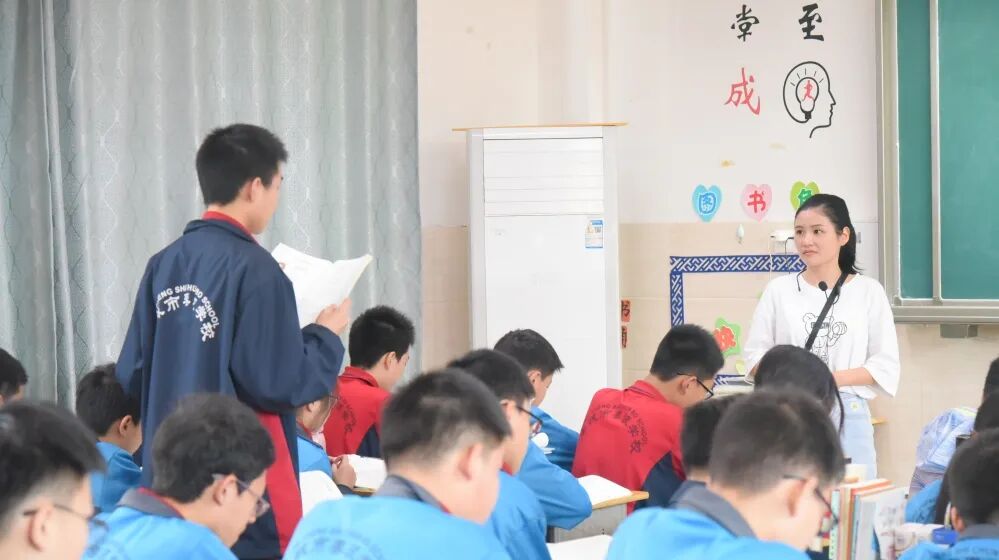 初一年级英语教师施佳音向大家呈现了一堂别具一格的阅读理解课。他自如切换着幽默而地道的英式口音和美式口音,使同学们沉浸在英语世界中,课文中伙伴之间的对话结合生活运用,给课堂增添了一份画面感、情节感。课上,同学们积极朗读词汇,配合文章熟悉。