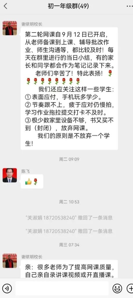坚持才能换来成长与收获,付出才能赢得支持与认可。在本周的线上教学工作中,有这样一批教育楷模,他们兢兢业业、潜心教学,他们勤勤恳恳、创新思维,他们为学生的学习与成长沤心沥血,为学校的教育教学发展鞠躬尽瘁。他们促进了线上教学工作的创新与发展,赢得了学生、家长以及学校的一致认可与好评。