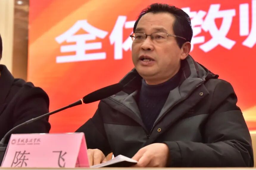 陈飞校长则就新学期学校发展思路和管理创新理念进行了深入阐释,以及对学校教学管理、教研师训、德育活动等方面进行规划与部署。