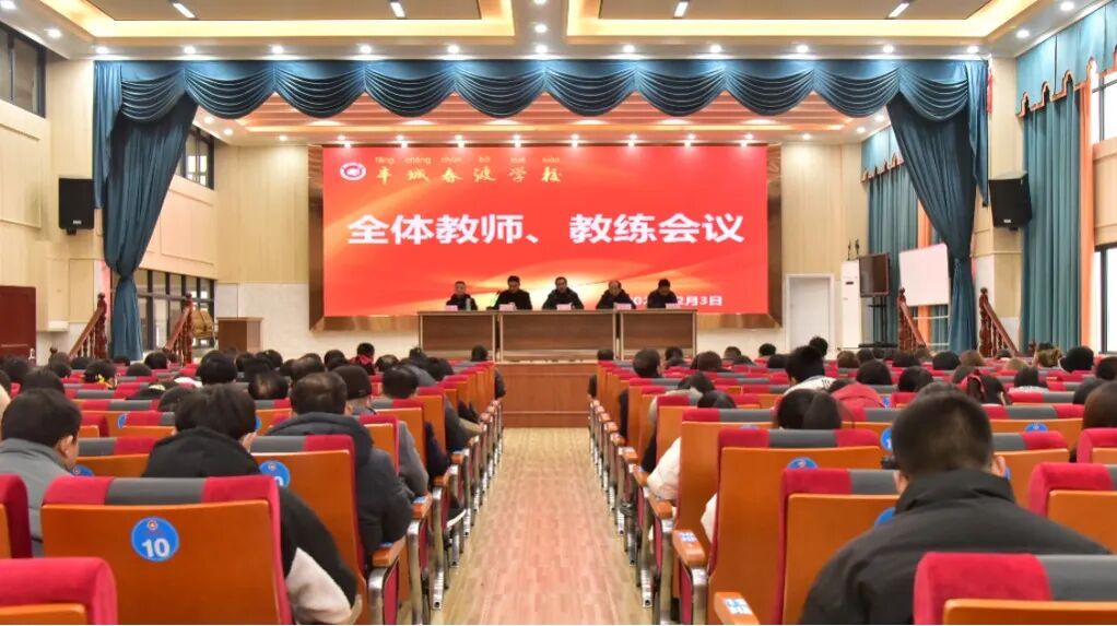 2月3日(农历正月十三)上午,我校组织召开新学期工作部署大会,陈飞校长主持会议并发表讲话,各年级分管副校长部署学校新学期工作。全体教师、教练共两百余人参加会议。