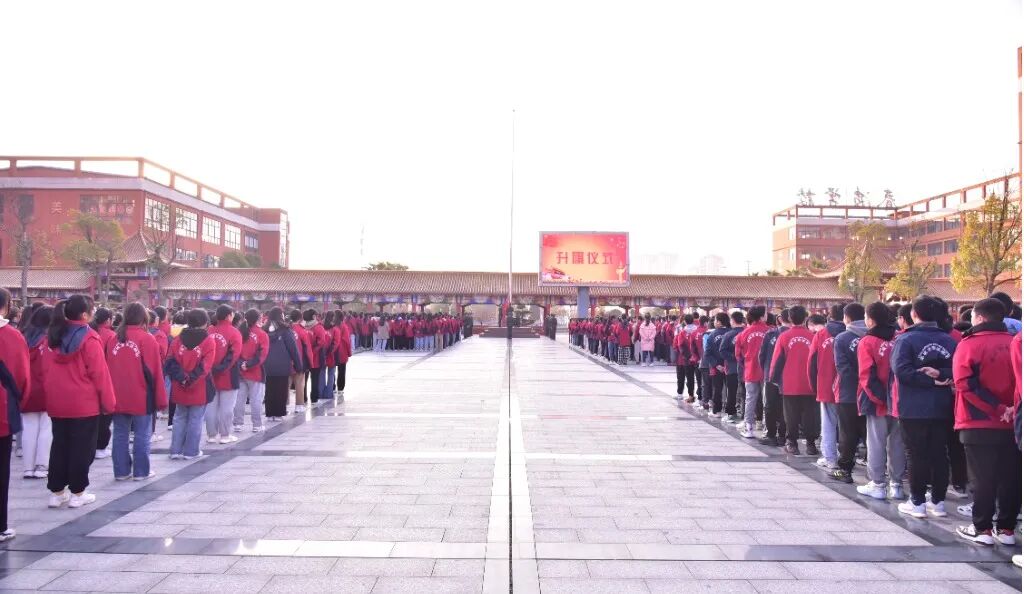 国歌奏响,热血澎湃。五星红旗在同学们炙热的目光中冉冉升起,爱国之情也在全体师生心中熊熊燃烧。