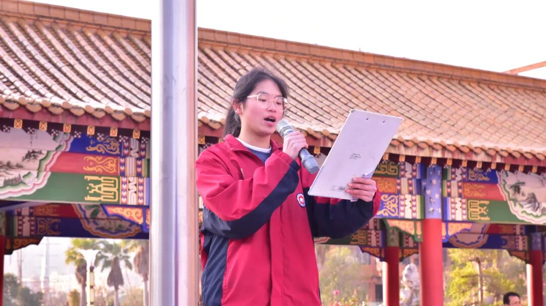 主持人用铿锵有力的声音开启了本周的升旗仪式,调动着同学们的视觉听觉,引导同学们进入各个环节,全体师生集中精力、认真聆听。