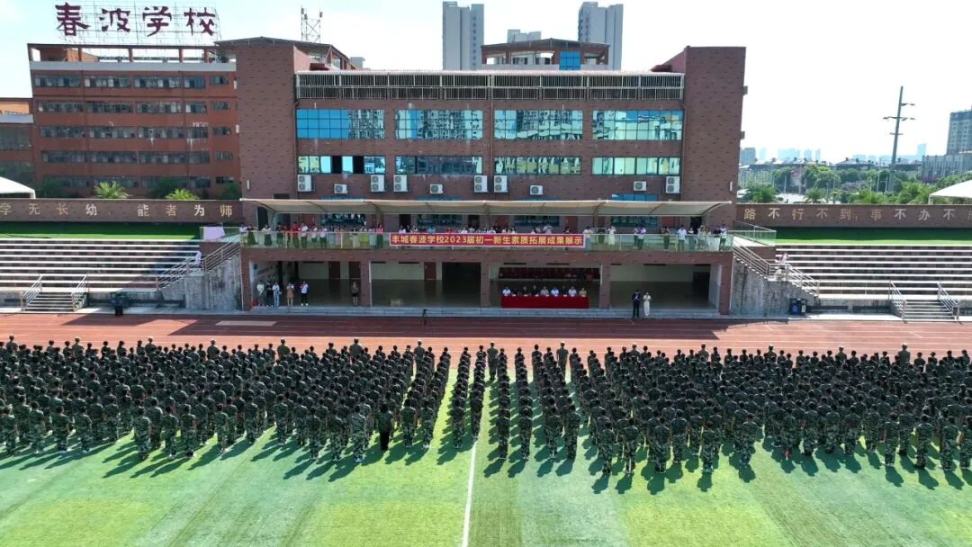 5天的辛苦训练,换来了同学们的成长与蝶变,辛勤的汗水终于浇灌出香甜的果实。9月8日下午,2023级初一新生素质教育拓展活动汇报表演在田径运动场隆重举行,各班级再次汇聚一堂,以精彩的表演向校领导、老师、教官们展示破土重生的自己。绿茵场上,军姿飒爽,雄风烈烈。祖国的明天,民族的未来,在这群军风少年的顽强与拼搏中释放出希望的光芒。