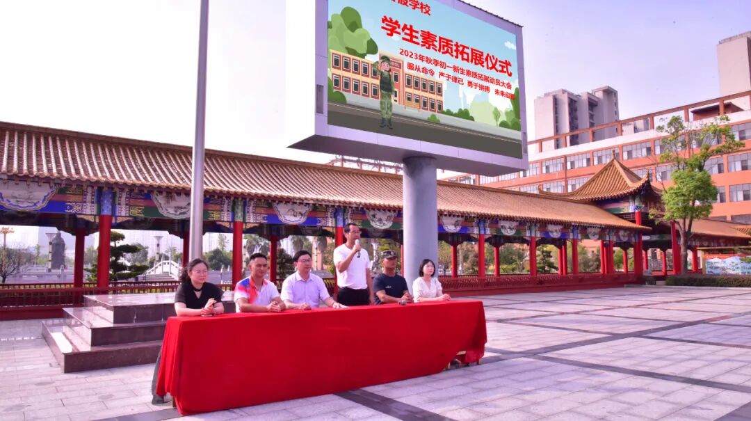 9月4日上午,初一年级全体师生在升旗广场举行开营仪式,熊智杰副校长主持仪式,王国福副校长作为年级掌舵人,发表主要讲话。