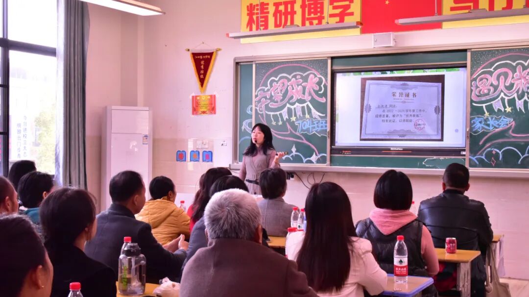 初二年级副校长谢依明号召家长们要关注孩子的全面健康尤其是心理健康,遵循孩子的身心发展规律,努力提高家庭教育能力,通过家校携手,为孩子创设有利于条件,为孩子的成长赋能。