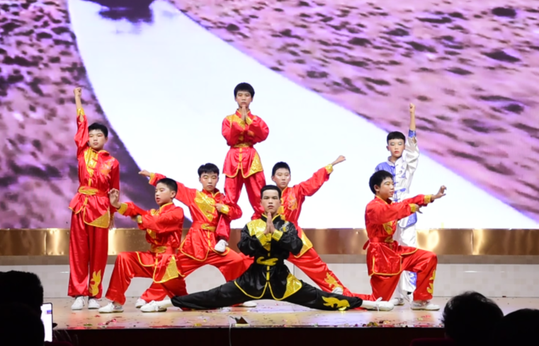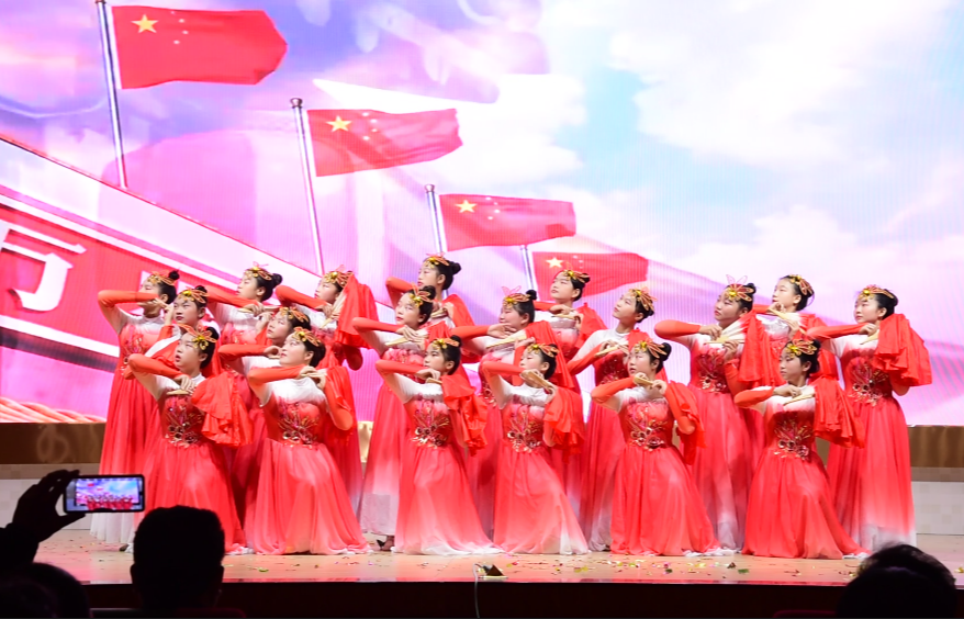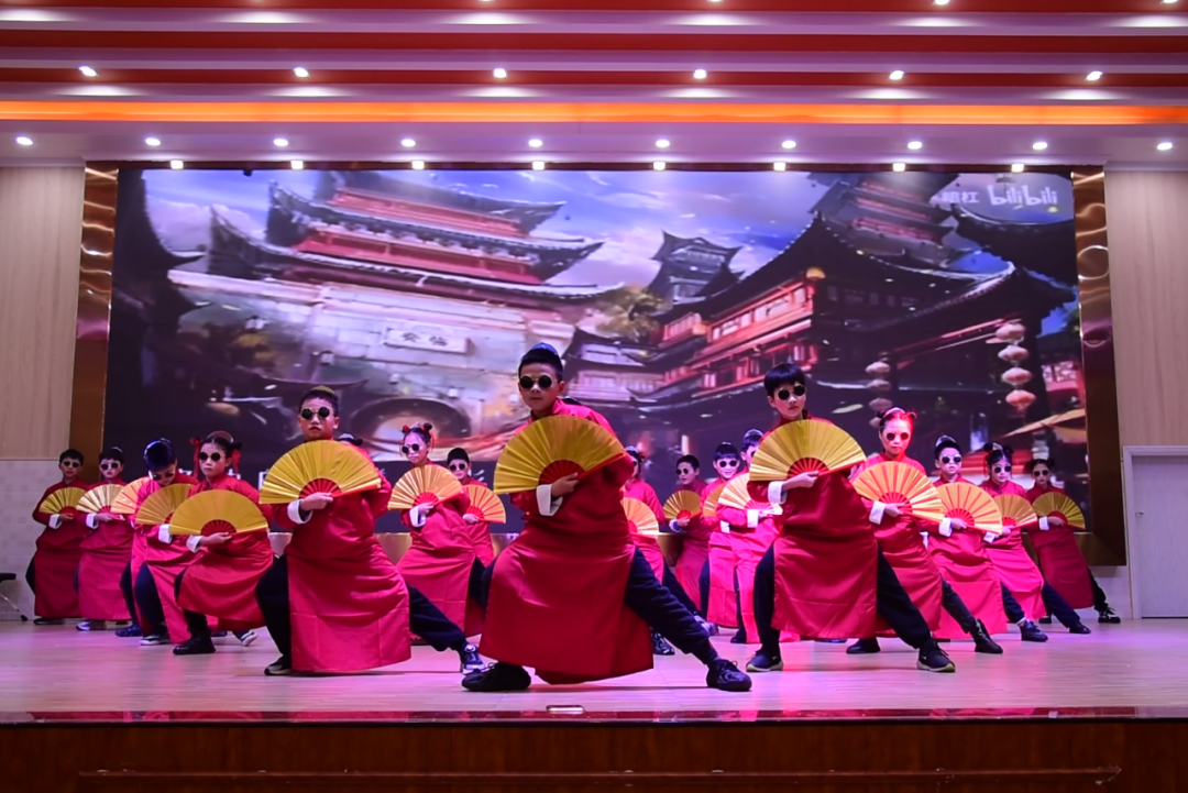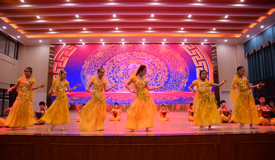 小学部舞蹈社团为我们献上一支开场舞《中华全家福》。同学们服装喜庆,表情欢乐,动作灵巧,随着音乐的律动变换各种队形,他们的笑容灿烂无比,好似夜空中的繁星,照亮了今夜的舞台。
