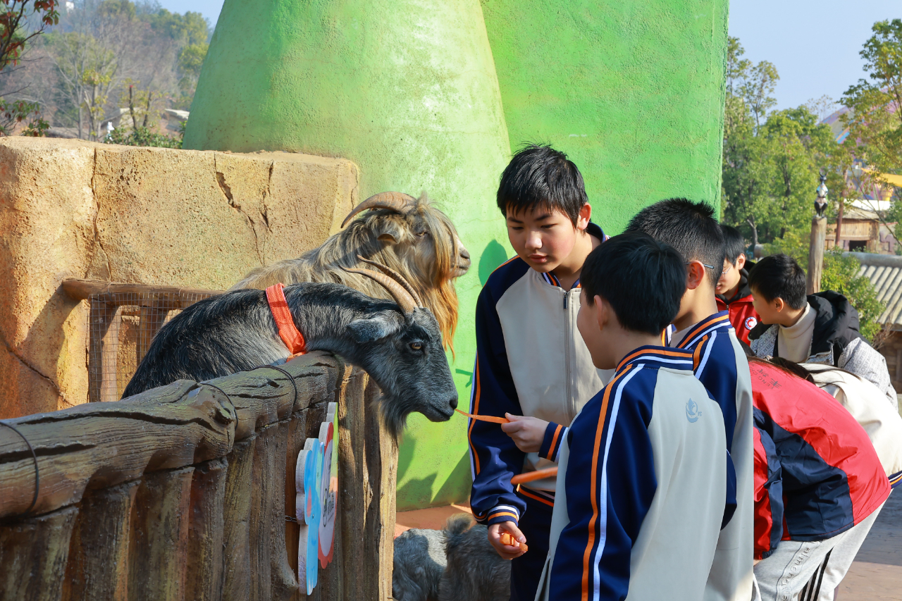走进动物园,同学们仿佛踏入了一个立体的动物百科世界。园区内环尾狐猴、骆驼、羊驼、河马、鳄鱼、狐獴等百余种动物依次呈现。猛兽区中,非洲狮的威严、老虎的雄姿让学生们屏息凝神;草食动物区里,斑马、长颈鹿、大羚羊、角马等悠然自得;萌宠互动区中,香猪、矮马、黑鼻羊等温顺可爱的动物成为同学们的亲密伙伴。通过近距离观察和老师讲解,学生们不仅认识了各类动物的特征习性,更懂得了生命多样性的珍贵意义。