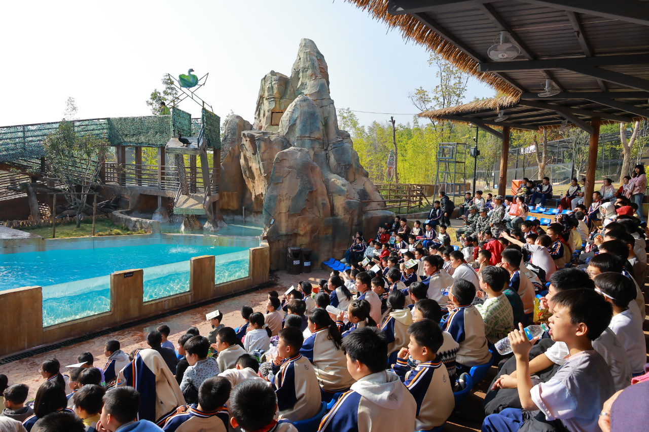 萌宠剧场里,山羊杂技的灵巧、小香猪跳水的憨态、飞鸟水上漂的轻盈,每一个精彩表演都引来阵阵欢笑与掌声。同学们在趣味互动中,了解到动物行为训练的科学原理,体会到人与动物和谐相处的美好。