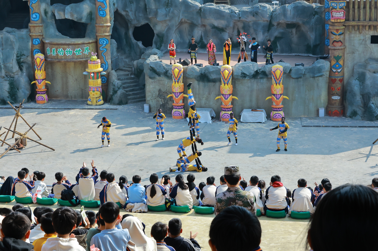 非洲剧场内,热情的鼓点拉开了文化体验的序幕。外籍演员们身着传统服饰,以充满活力的舞蹈展现非洲独特的民风民俗。特别设置的观众互动环节,让同学们亲身感受到非洲文化的热情与开放,在欢乐中增进对不同文化的理解与尊重。