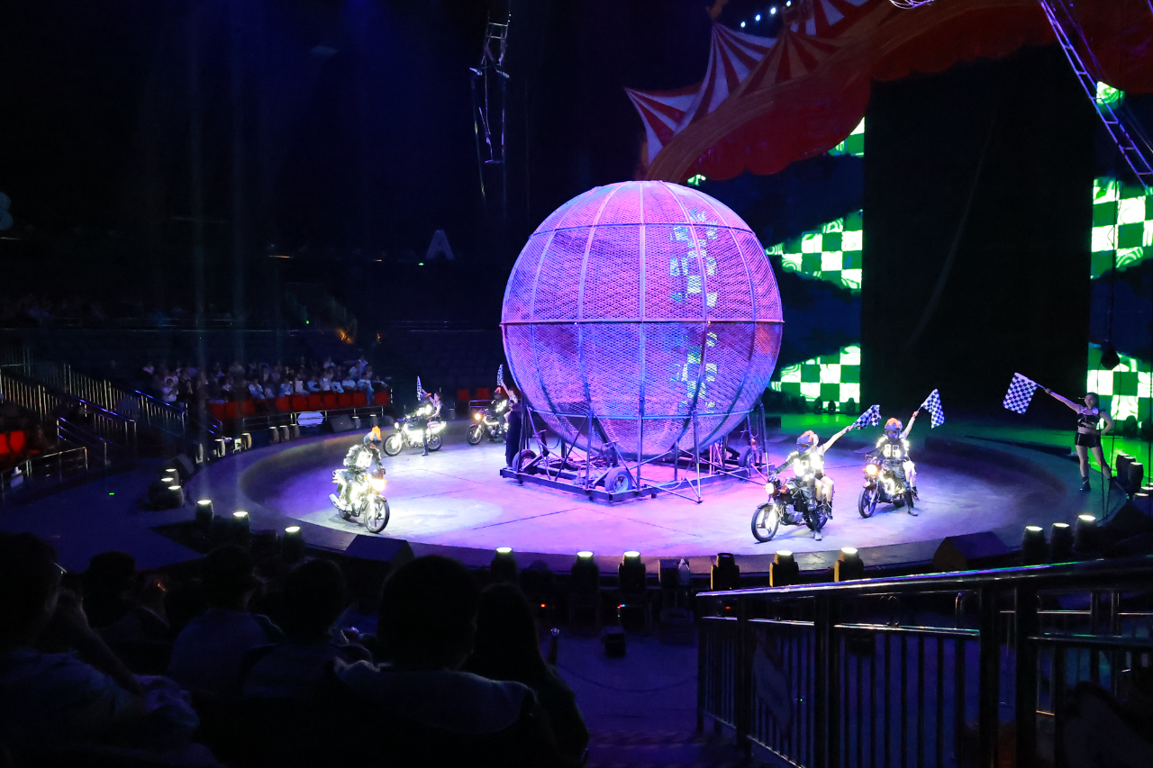 最令人期待的唯美国际大马戏,将整个研学活动推向高潮。魔轮表演中,特技演员在高速旋转的轮盘上完成行走、跳跃等高难度动作,展现极限挑战的勇气;魔幻时刻结合灯光与杂技,呈现唯美的视觉盛宴;非洲杂技融合文化元素与小丑互动,充满欢乐氛围;惊险马术表演中,演员在马背上完成空中特技,展现“奇、难、险、美”的完美结合;环球飞车环节,7辆摩托车在铁球内高速追逐,模拟极限竞速场景,引得全场惊叹连连。整场演出不仅是一场视听盛宴,更让同学们深刻感受到艺术背后的坚持与拼搏精神。