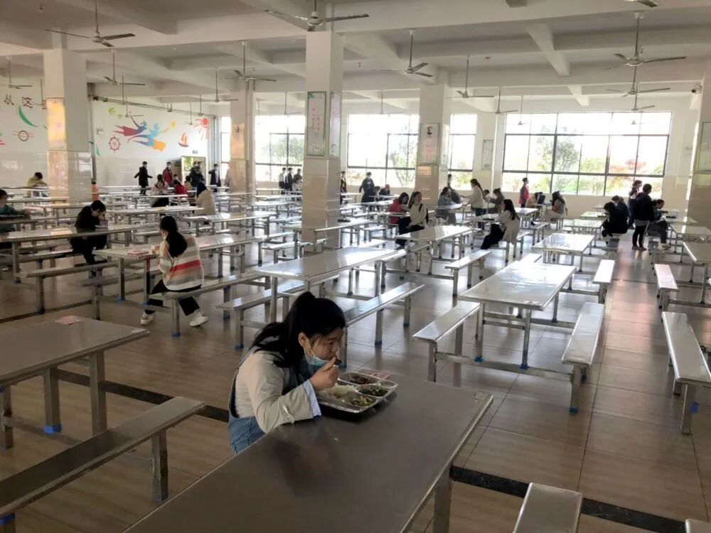 按照“错时分散”就餐方案,学生在指定的就餐时间,佩戴口罩、有序间隔、保持一路纵队,按规定的出入口和通道出入餐厅,按规定方向落座,在规定座位用餐。保持距离,不聚集,不乱出、乱入、乱坐。