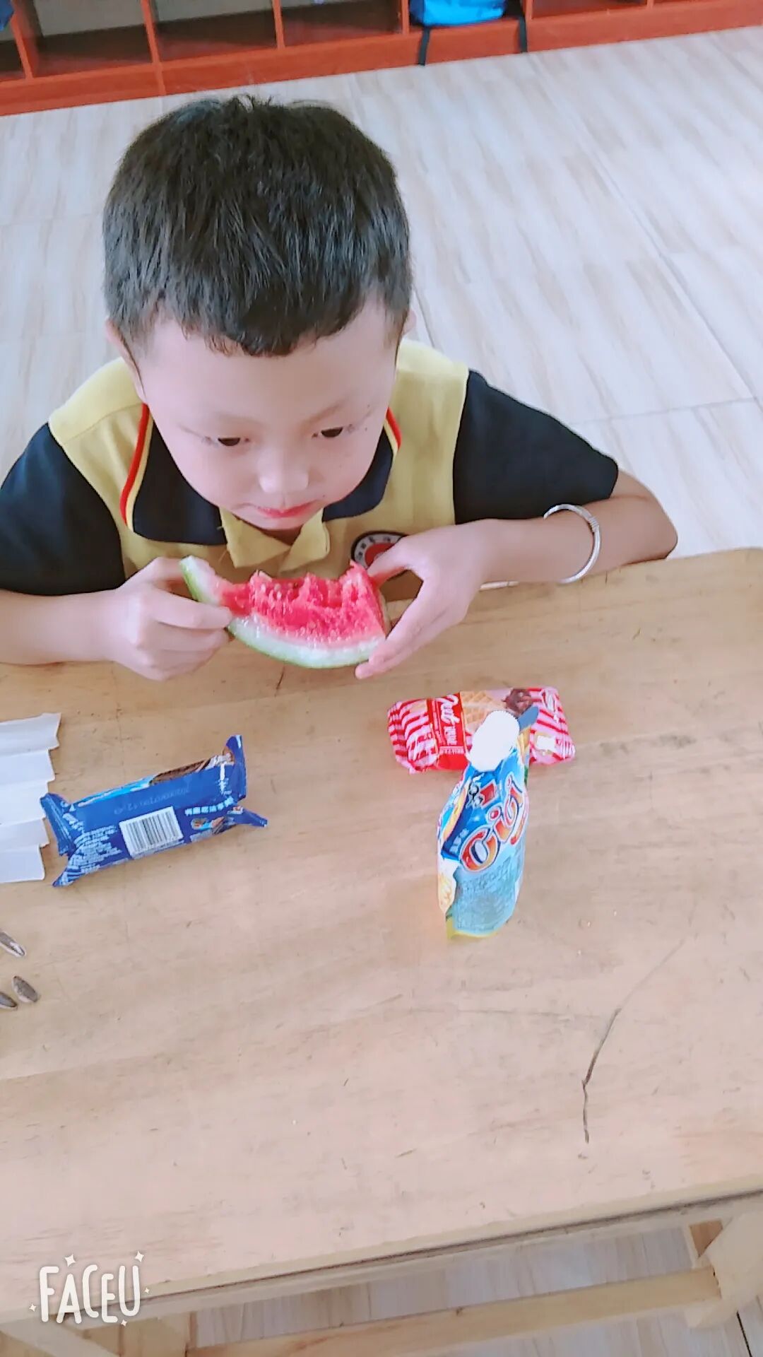 “茶话”环节,让我们跟着孩子们来一场六一“吃喝”活动吧,香蕉、饼干、西瓜、糖果、果冻、薯片、蛋糕、可乐,简直应有尽有,孩子们的节日,就是要吃的开心,玩的开心!