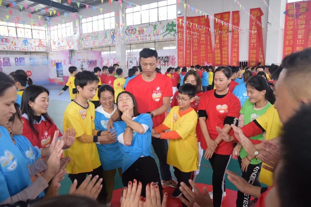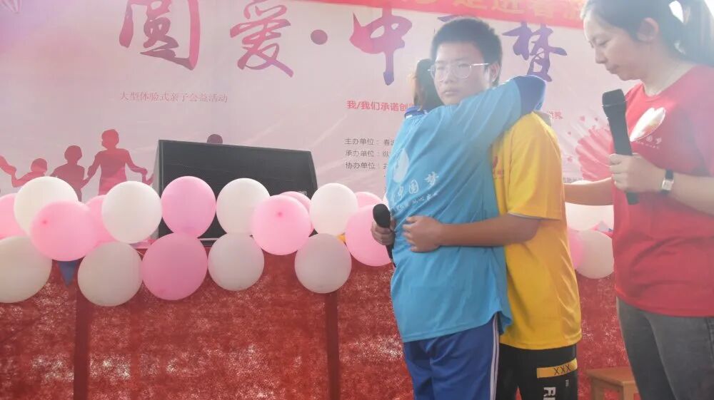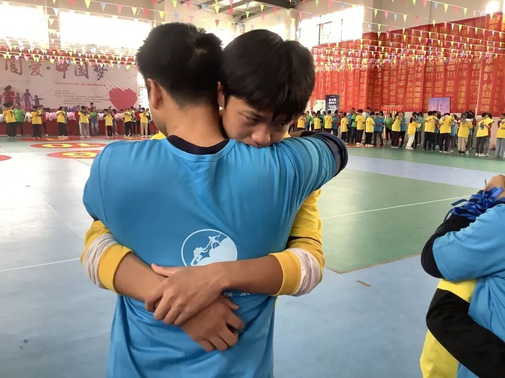 各组的才艺展示开启了当日下午的主题活动。这支由学生、家长、老师组成的队伍,有着非同一般的默契。在“疾风劲草”互动环节,团队的凝聚度与信任感达到了顶点。在“温暖话语”环节,孩子与父母真心交汇,孩子们聆听到了生命中最重要的人对他们说的最想听的话,“谢谢”、“对不起”、“我爱你”虽然是简单的三句话,但无论是孩子还是扮演“爸爸”或“妈妈”的家长、老师和义工都泪流满面!在“漫漫人生路”环节中,家长终于知道他们的宝贝长大了,体会到等他们老了,孩子就是他们最有力的依靠,那个时候只希望孩子多陪在自己身边,就像现在孩子希望爸爸妈妈放下手机别那么忙,多陪陪自己是一样的。