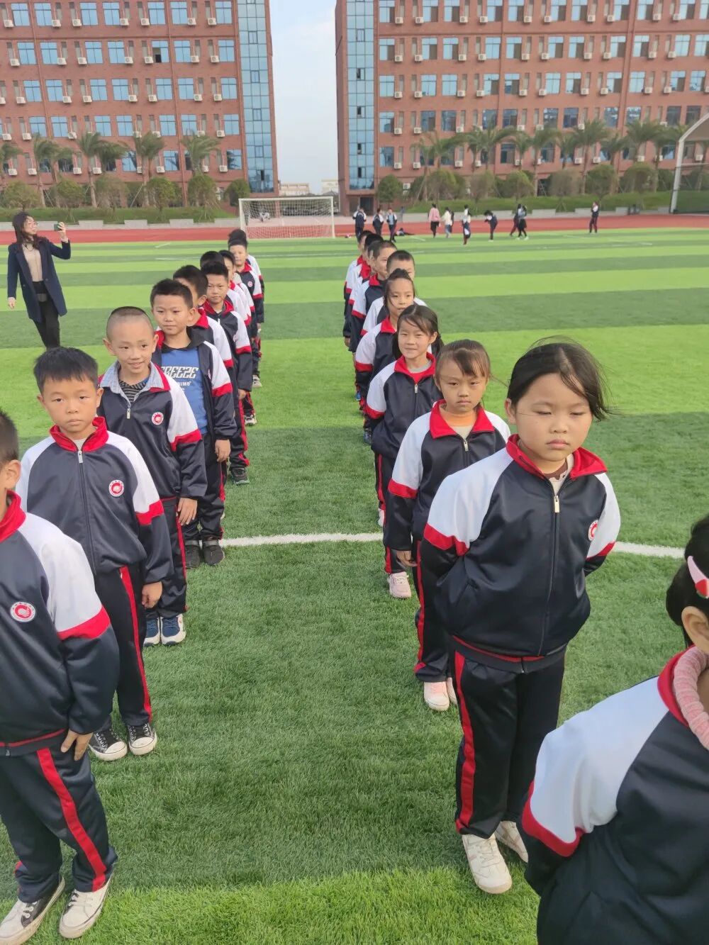 一、二、三年级的孩子们,在小学部蔡总教练响亮的口令指挥下,一个个小小的身影做着“向左转”、“向右转”、“立正”、“稍息”等动作,孩子们动作规范,表情严肃,俨然一个个神气的小战士。