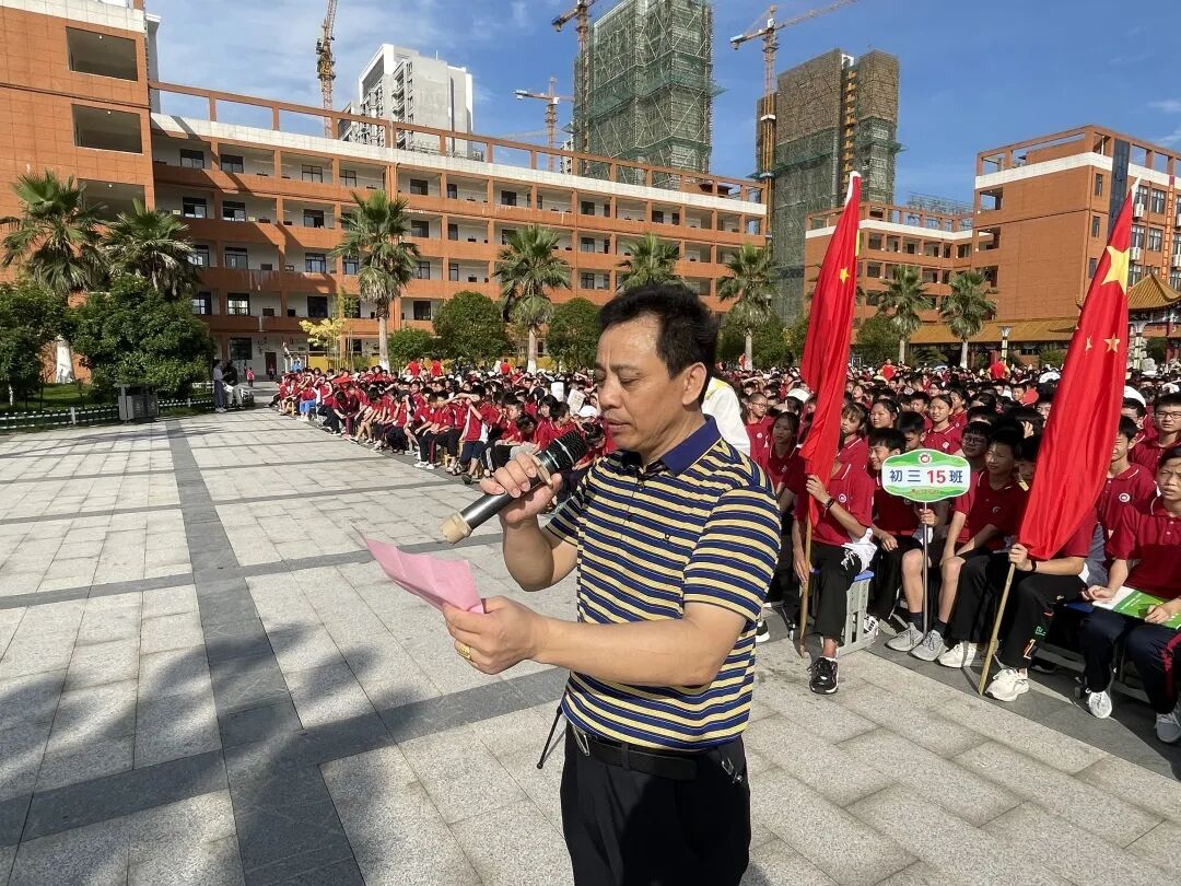 陈飞校长肯定了学生们三年来的付出与成长,并鼓励他们用“一览众山小”的傲气和“山高我为峰”的霸气积极勇敢面对中考、决胜中考。同时,他要求老师们中考期间一如继往,细心陪伴,无愧于心!