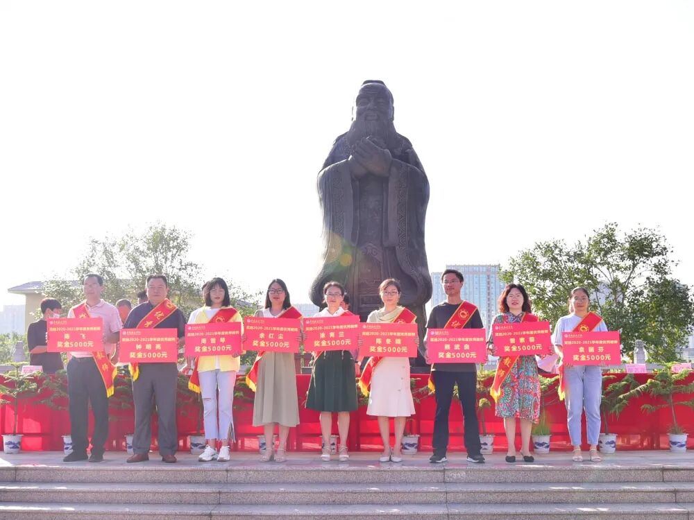 接下来获得2020-2021学年度评优表彰的教师们上台领奖。