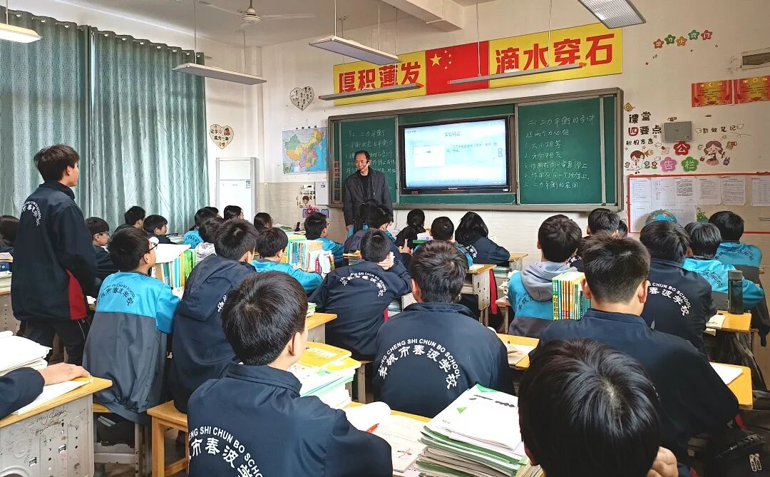 3月8日下午第二节课,孙茜明老师在初二3班上了一堂课题为《二力平衡》的物理公开课。他通过“平衡状态”、“二力平衡的条件”、“二力平衡条件的应用”三个知识点展开此次课堂教学。