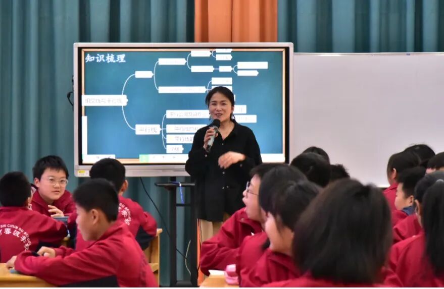 平行线不仅是初中几何的重要内容,而且还是高中立体几何的基础,为了让同学们认识深刻、学习透彻,李建芳老师课前精心准备,课堂上深入浅出,她将课堂重难点经过前期的思想“咀嚼”后,以易吸收、易消化的方式传授给学生。