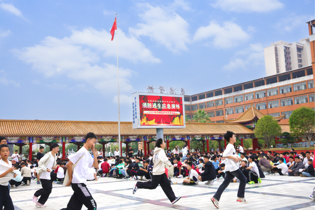 演练的成功得益于学校的周密部署与师生的共同努力。政教处主任邓玲在总结讲话中充分肯定了师生们的出色表现,并指出学校始终将安全置于首位。她强调,安全无小事,防范在平时,希望同学们真正将安全意识内化于心、外化于行,让安全警钟长鸣心间,让规范行为成为自觉。