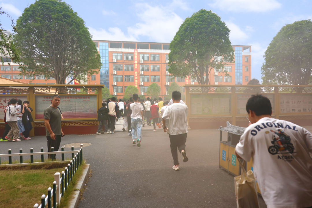 全体参演学生安全、快速地撤离至指定的室外广场后,立即以班级为单位整齐列队。各班班主任迅速、认真地清点本班人数,并逐级向上汇报。经最终确认,全体学生均安全撤离,无一人遗漏。