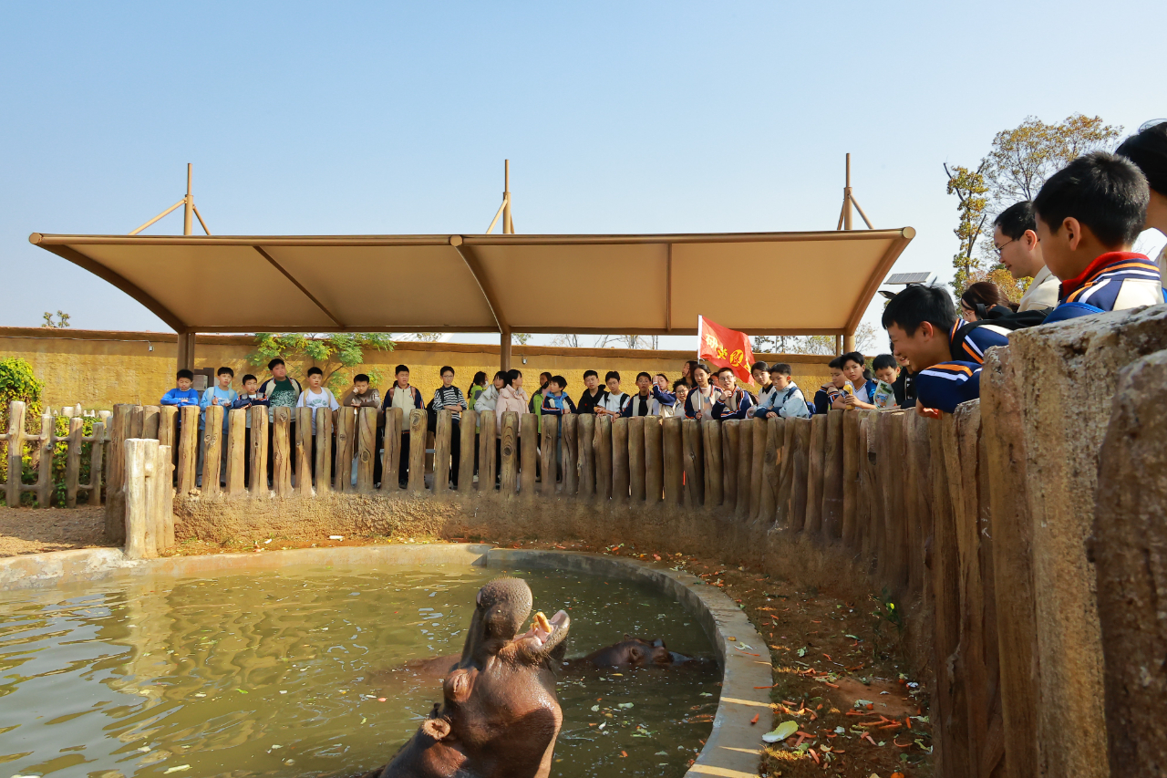 走进动物园,同学们仿佛踏入了一个立体的动物百科世界。园区内环尾狐猴、骆驼、羊驼、河马、鳄鱼、狐獴等百余种动物依次呈现。猛兽区中,非洲狮的威严、老虎的雄姿让学生们屏息凝神;草食动物区里,斑马、长颈鹿、大羚羊、角马等悠然自得;萌宠互动区中,香猪、矮马、黑鼻羊等温顺可爱的动物成为同学们的亲密伙伴。通过近距离观察和老师讲解,学生们不仅认识了各类动物的特征习性,更懂得了生命多样性的珍贵意义。