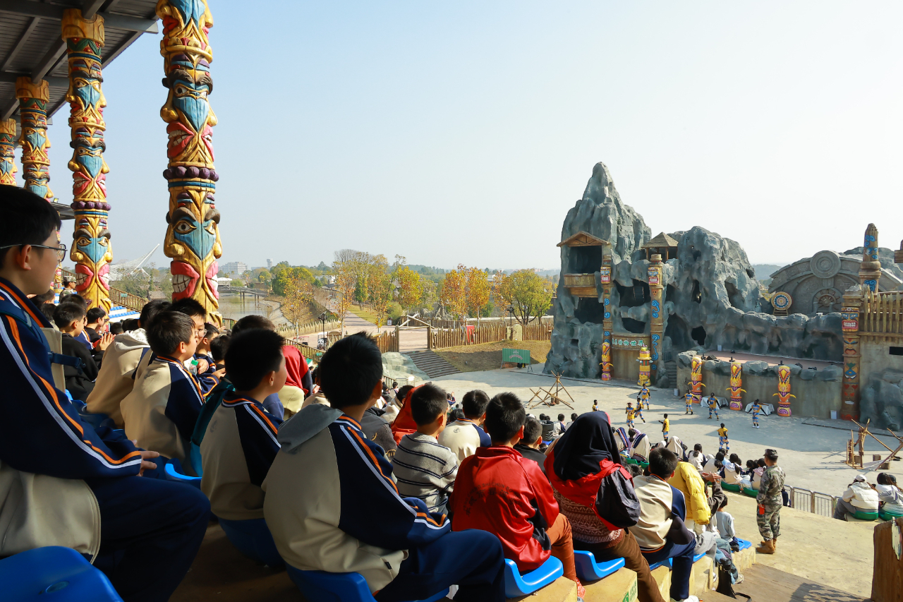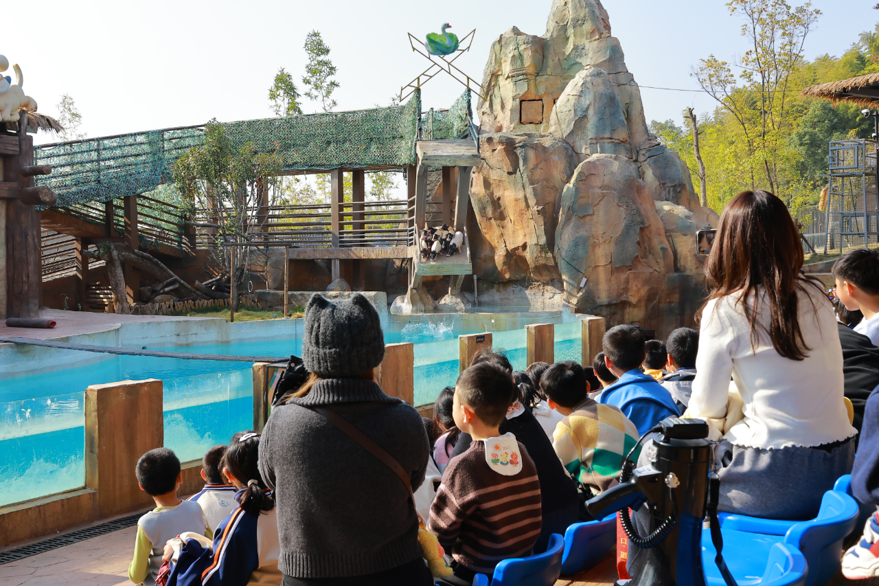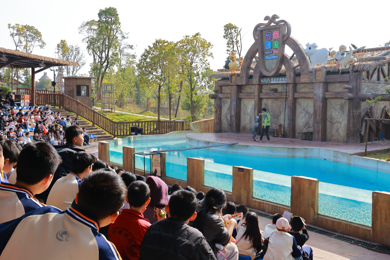 萌宠剧场里,山羊杂技的灵巧、小香猪跳水的憨态、飞鸟水上漂的轻盈,每一个精彩表演都引来阵阵欢笑与掌声。同学们在趣味互动中,了解到动物行为训练的科学原理,体会到人与动物和谐相处的美好。