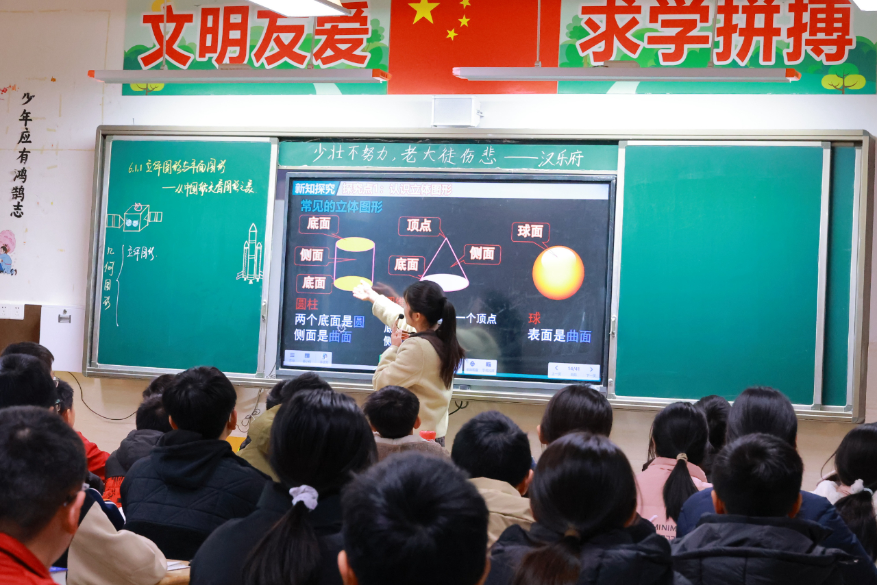 李建芳老师的数学课以航天科技为场景,融合数字人技术,引导学生在观察与探究中抽象几何图形,于潜移默化中培育数学核心素养,并以大国重器元素激发家国情怀。