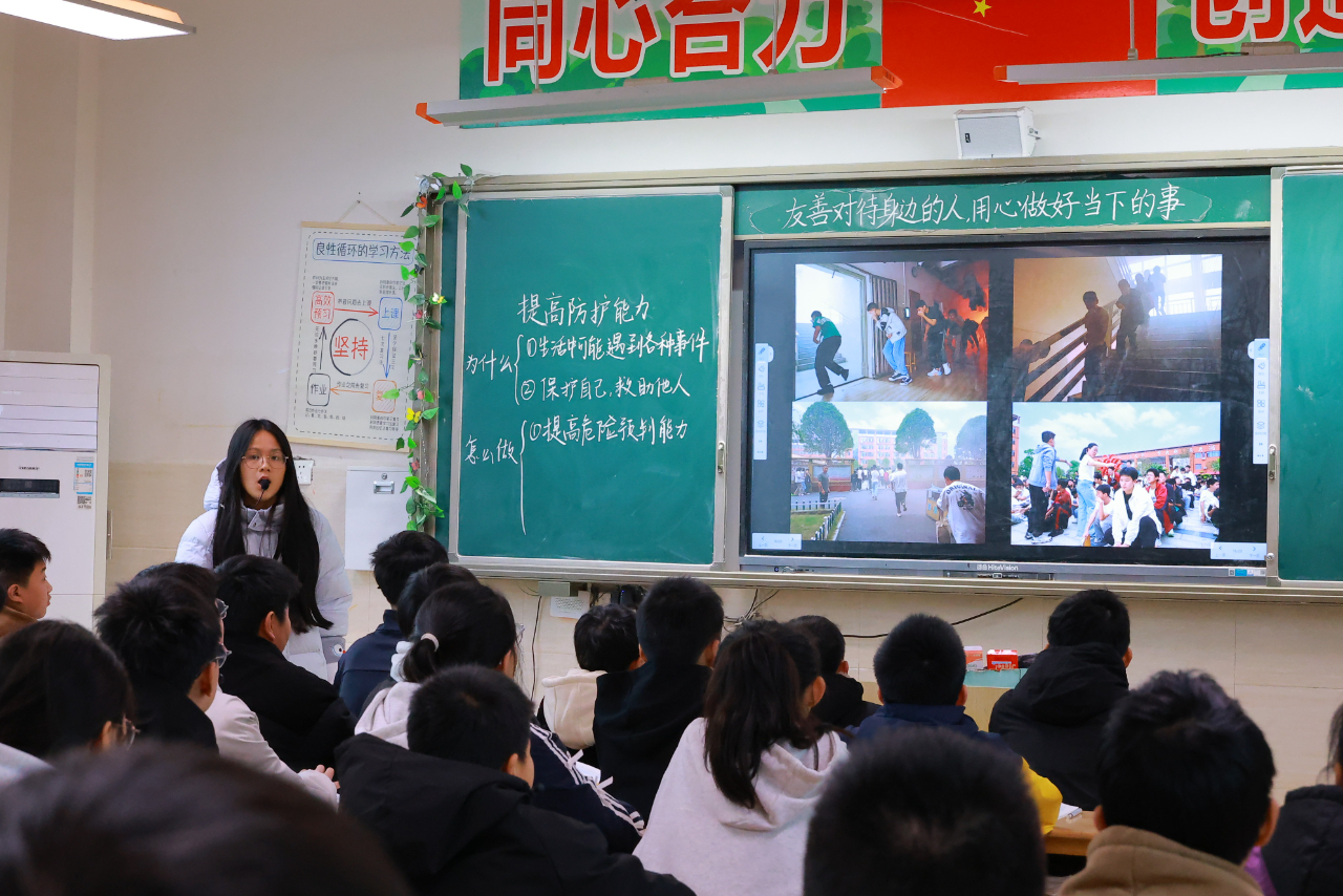 孙梦琦老师的道德与法治课《提高防护能力》则活用VR技术创设情境,从生活案例与校园演练出发,引导学生识别风险、掌握技能,拓展了防护知识的广度与深度,课堂生动且实用。